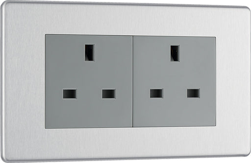 BG FBS22G Flatplate Screwless Double Socket 13A - Grey Insert - Brushed Steel