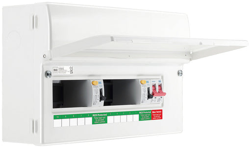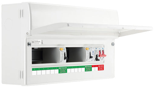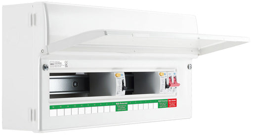 BG CFUDP1000010A BG 16 Module 10 Way Populated + 100A Switch, 2x100A Type A 30mA RCD & 10xMCBs