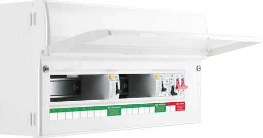 BG CFUDP16614ASPD 22 Module 14 Way Populated + 100A Switch, 2x63A Type A 30mA RCD, SPD, 32A MCB & 12xMCBs