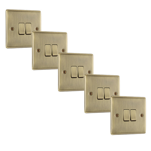 BG NAB42x5 Nexus Metal 20A 16AX 2 Way Double Light Switch - Antique Brass (5 Pack)