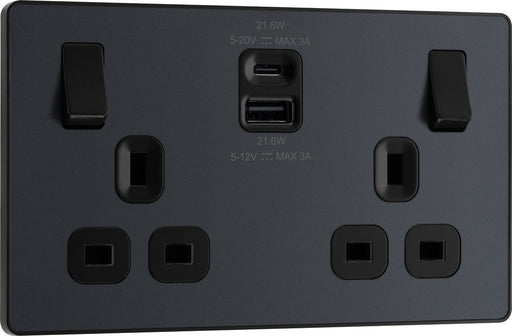BG Evolve PCDMG22UAC22B 13A Double Switched Power Socket + USB A+C (22W) - Matt Grey (Black)