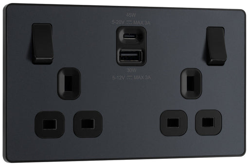 BG Evolve PCDMG22UAC45B 13A Double Switched Power Socket + USB A+C (45W) - Matt Grey (Black)