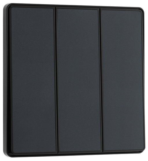 BG Evolve PCDMG43EB 20A 16AX 2 Way Triple Light Switch, Edge to Edge Rocker - Matt Grey (Black)