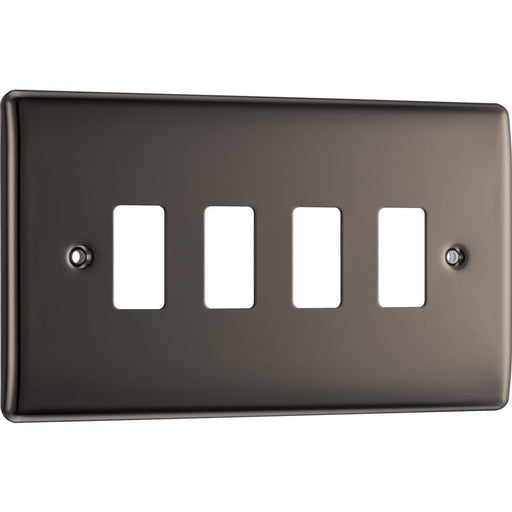 BG FBNEMR4 Flatplate Screwless Quad Euro Module Faceplate - Black Nickel