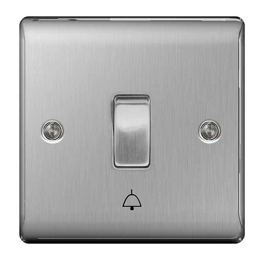 BG NBS14 Nexus Metal Single Bell Push Switch 10A - Brushed Steel