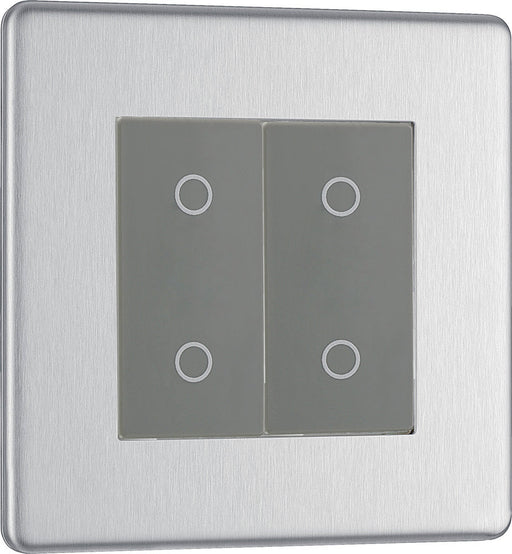 BG FBSTDS2G-K Flatplate Screwless 2-Way Secondary 200W Double Touch Dimmer Switch - Brushed Steel (Grey)