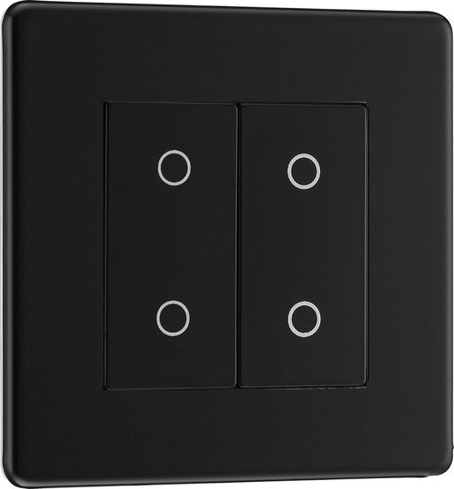 BG FFBTDS2B-K Flatplate Screwless 2-Way Secondary 200W Double Touch Dimmer Switch - Matt Black (Black)