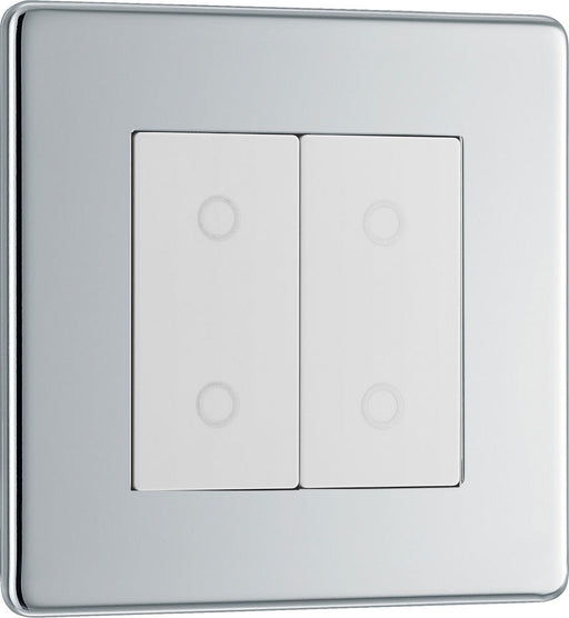 BG FPCTDM2W-K Flatplate Screwless 2-Way Master 200W Double Touch Dimmer Switch - Polished Chrome (White) Slimline POLISHED CHROME screwless accesso...