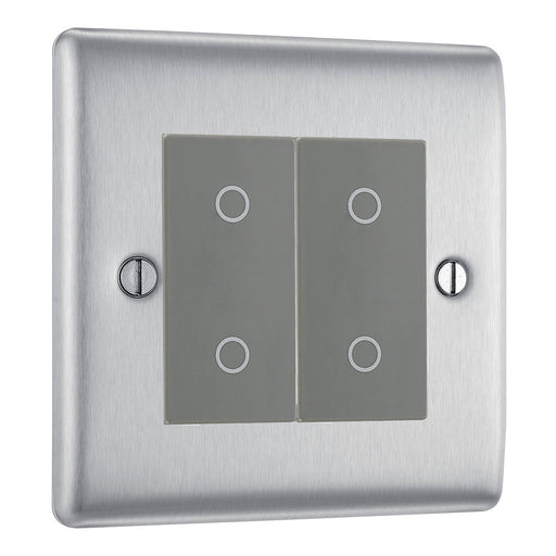 BG NBSTDS2G-K Nexus Metal 2-Way Secondary 200W Double Touch Dimmer Switch - Brushed Steel (Grey)