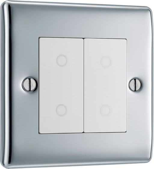 BG NPCTDM2W-K Nexus Metal 2-Way Master 200W Double Touch Dimmer Switch - Polished Chrome (White)