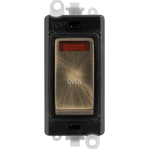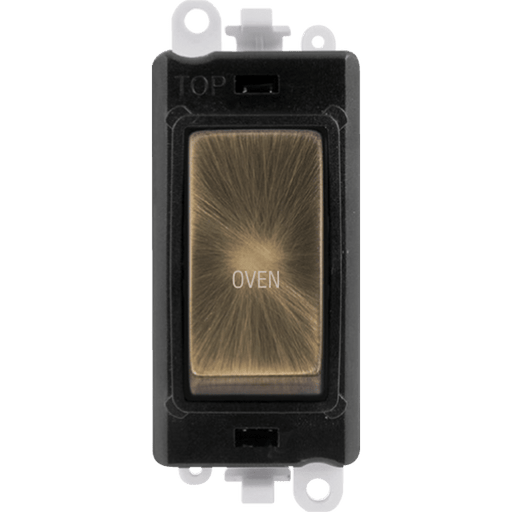 Click GridPro GM2018BKAB-OV 20AX Double Pole Switch Module printed "Oven" - Antique Brass (Black)