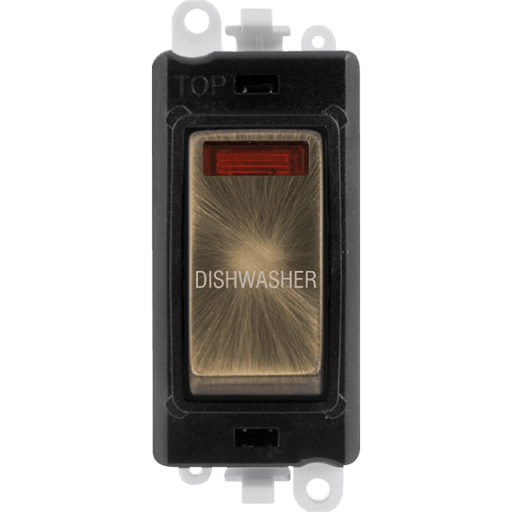 Click GridPro GM2018BKAB-DW 20AX Double Pole Switch Module printed "Dishwasher" - Antique Brass (Black)