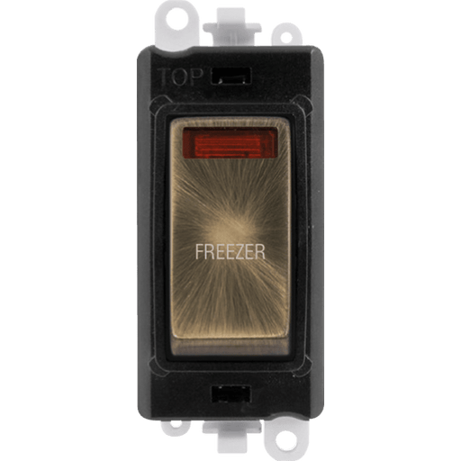 Click GridPro GM2018BKAB-FZ 20AX Double Pole Switch Module printed "Freezer" - Antique Brass (Black)