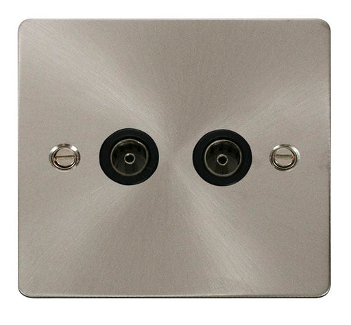 Click Define FPBS066BK Flat Plate Twin Co-Axial Outlet (Non-Isolated) - Brushed Stainless (Black) CLICK Define Decorative Flat Plate Electrical Acc...