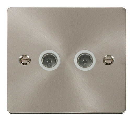 Click Define FPBS066WH Flat Plate Twin Co-Axial Outlet (Non-Isolated) - Brushed Stainless (White) CLICK Define Decorative Flat Plate Electrical Acc...