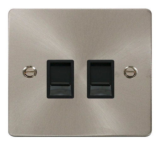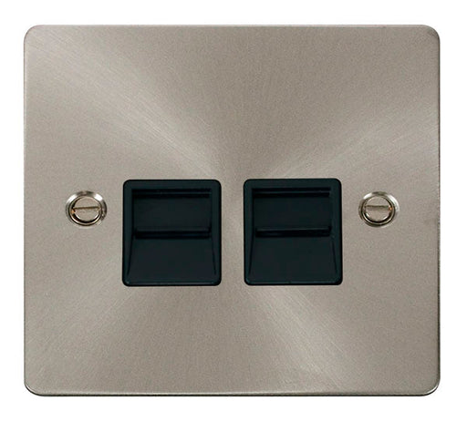 Click Define FPBS126BK Flat Plate Twin Secondary Telephone Outlet - Brushed Stainless (Black)