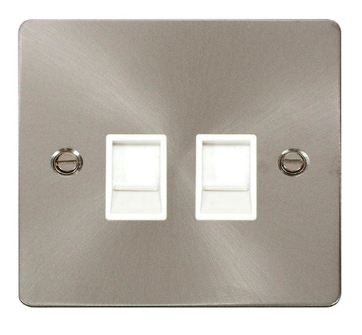 Click Define FPBS118WH Flat Plate Twin RJ45 Outlet - Brushed Stainless (White)