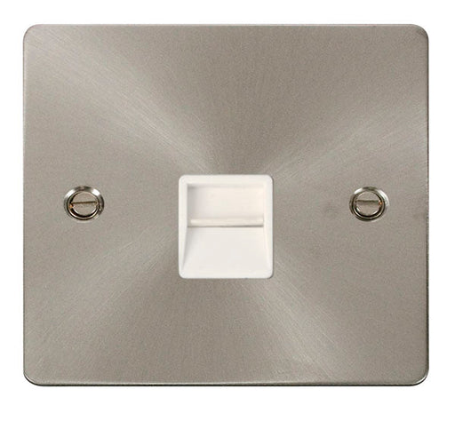 Click Define FPBS120WH Flat Plate Single Master Telephone Outlet - Brushed Stainless (White)