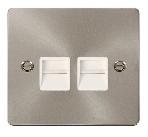 Click Define FPBS126WH Flat Plate Twin Secondary Telephone Outlet - Brushed Stainless (White)