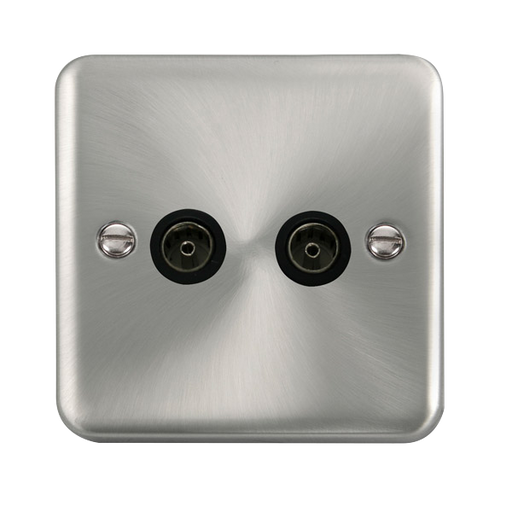 Click Deco Plus DPSC066BK Twin Co-Axial Outlet (Non-Isolated) - Satin Chrome (Black)