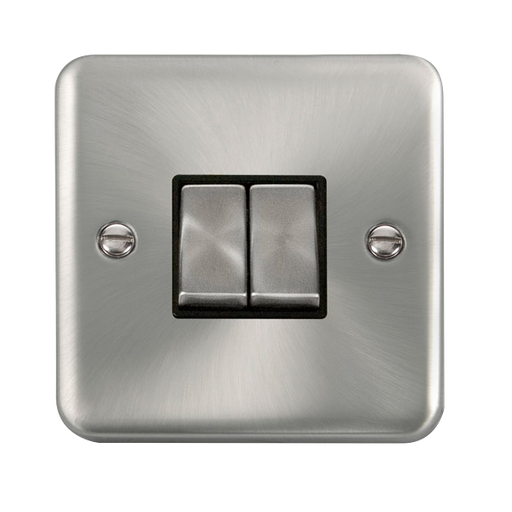 Click Deco Plus DPSC422 10AX 2-Gang 2-Way Toggle Plate Switch - Satin Chrome