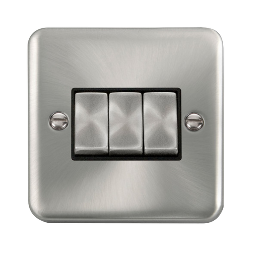 Click Deco Plus DPSC423 10AX 3-Gang 2-Way Toggle Plate Switch - Satin Chrome