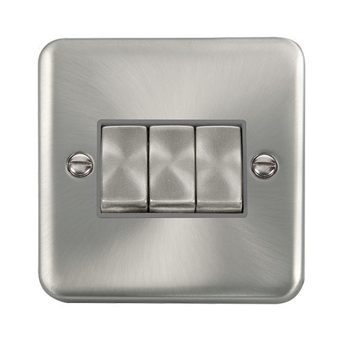 Click Deco Plus DPSC413GY 10AX Ingot 3-Gang 2-Way Plate Switch - Satin Chrome (Grey)