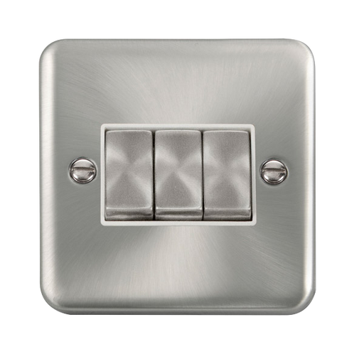 Click Deco Plus DPSC413WH 10AX Ingot 3-Gang 2-Way Plate Switch - Satin Chrome (White)