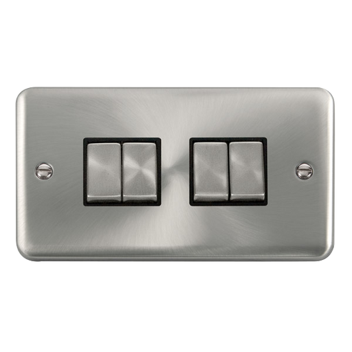Click Deco Plus DPSC414BK 10AX Ingot 4-Gang 2-Way Plate Switch - Satin Chrome (Black)
