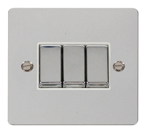 Click Define FPCH413WH Flat Plate 10AX Ingot 3-Gang 2-Way Plate Switch - Polished Chrome (White) CLICK Define Decorative Flat Plate Electrical Acce...