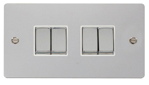 Click Define FPCH414WH Flat Plate 10AX Ingot 4-Gang 2-Way Plate Switch - Polished Chrome (White) CLICK Define Decorative Flat Plate Electrical Acce...