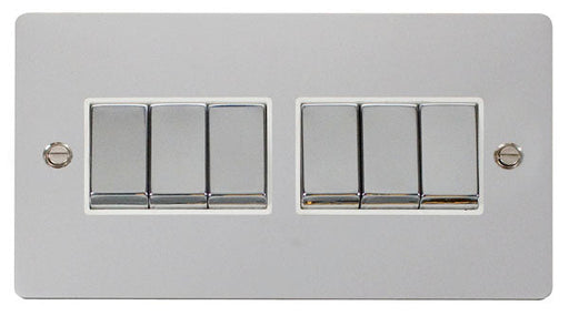 Click Define FPCH416WH Flat Plate 10AX Ingot 6-Gang 2-Way Plate Switch - Polished Chrome (White) CLICK Define Decorative Flat Plate Electrical Acce...
