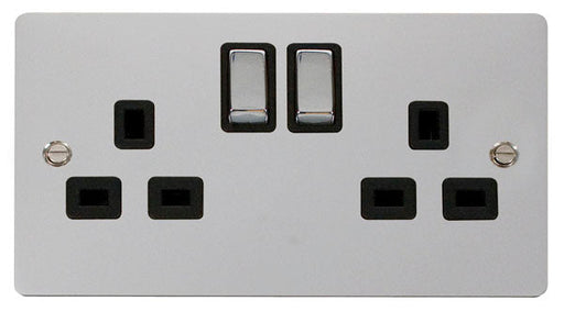 Click Define FPCH536BK Flat Plate 13A Ingot 2G DP Switched Socket - Polished Chrome (Black)