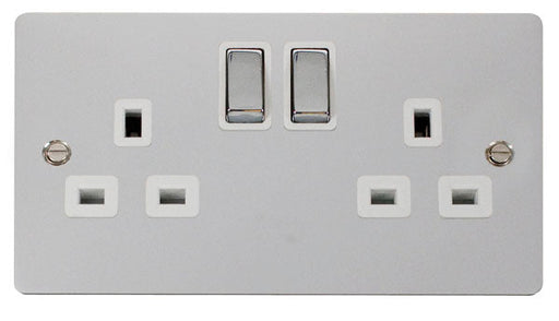 Click Define FPCH536WH Flat Plate 13A Ingot 2G DP Switched Socket - Polished Chrome (White)