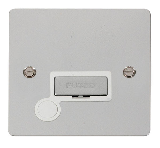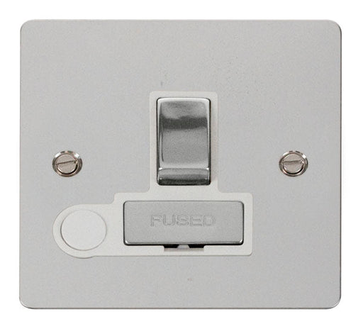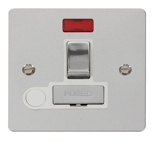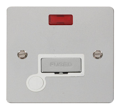 Click Define FPCH552WH Flat Plate 13A Ingot DP Switched Fused Spur + Neon + Flex Outlet - Polished Chrome (White) CLICK Define Decorative Flat Plat...