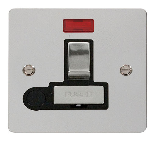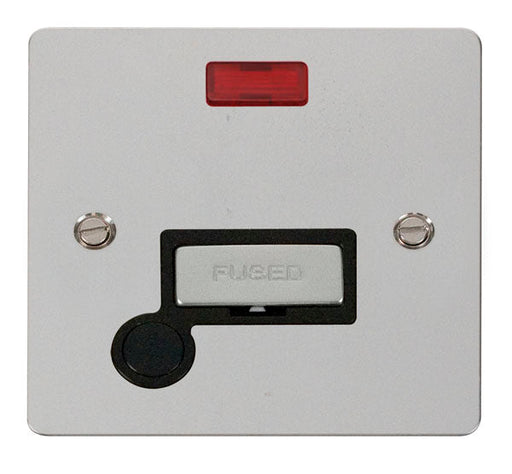 Click Define FPCH553BK Flat Plate 13A Ingot Fused Spur + Neon + Flex Outlet - Polished Chrome (Black)
