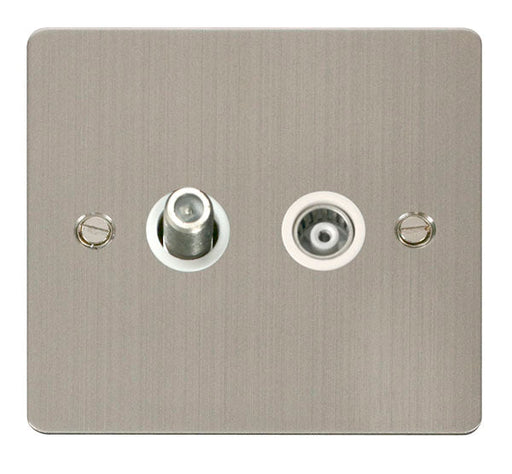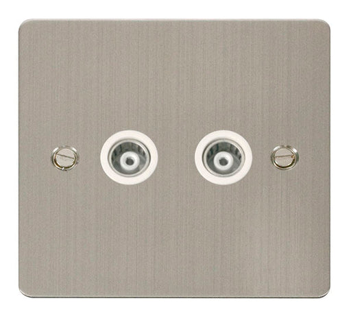 Click Define FPSS159WH Flat Plate Twin Co-Axial Outlet (Isolated) - Stainless Steel (White) CLICK Define Decorative Flat Plate Electrical Accessori...