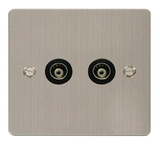 Click Define FPSS159BK Flat Plate Twin Co-Axial Outlet (Isolated) - Stainless Steel (Black)