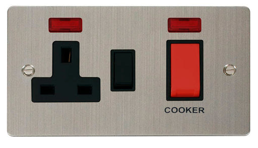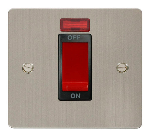 Click Define FPSS205BK Flat Plate 45A 2G DP Switch + 13A DP Switched Socket + Neon - Stainless Steel (Black)
