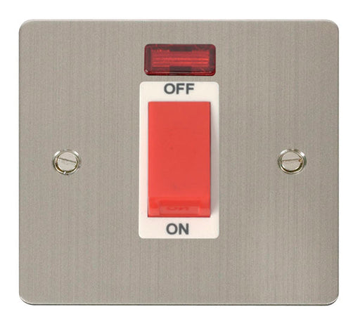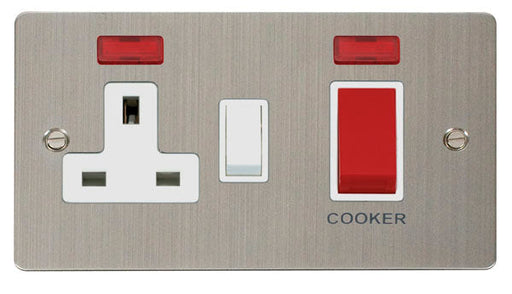 Click Define FPSS205WH Flat Plate 45A 2G DP Switch + 13A DP Switched Socket + Neon - Stainless Steel (White)