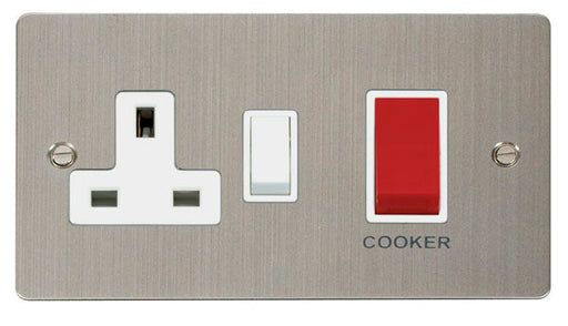 Click Define FPSS204WH Flat Plate 45A 2G DP Switch + 13A DP Switched Socket - Stainless Steel (White)