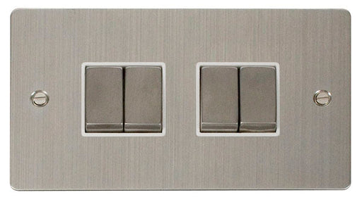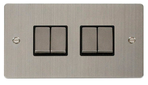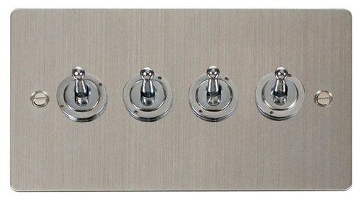 Click Define FPSS424 Flat Plate 10AX 4-Gang 2-Way Toggle Plate Switch - Stainless Steel