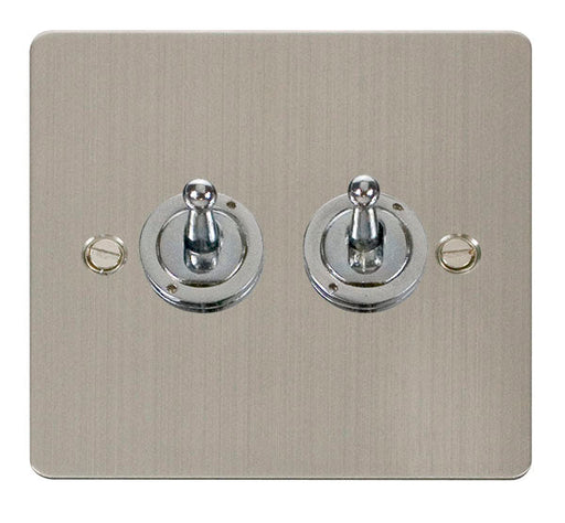Click Define FPSS422 Flat Plate 10AX 2-Gang 2-Way Toggle Plate Switch - Stainless Steel