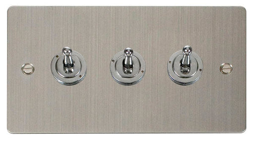 Click Define FPSS423 Flat Plate 10AX 3-Gang 2-Way Toggle Plate Switch - Stainless Steel