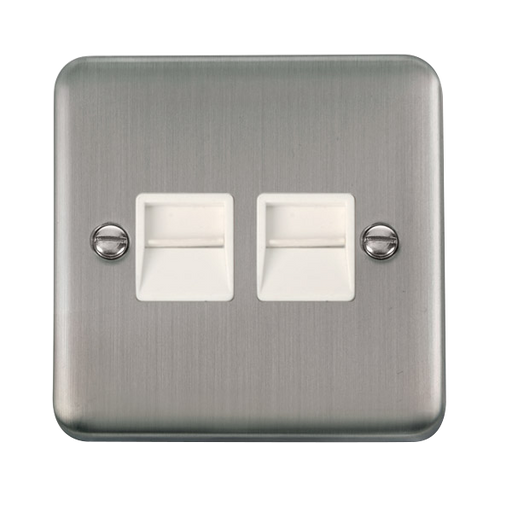 Click Deco Plus DPSS121WH Twin Master Telephone Outlet - Stainless Steel (White)