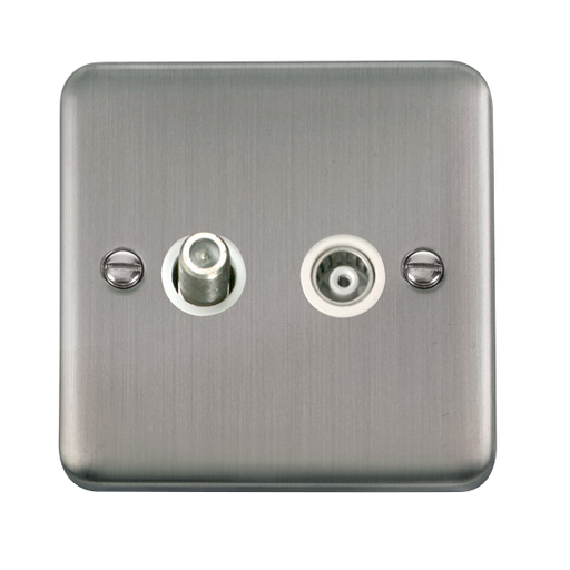Click Deco Plus DPSS170WH Satellite & Co-Axial Outlet (Non-Isolated) - Stainless Steel (White)