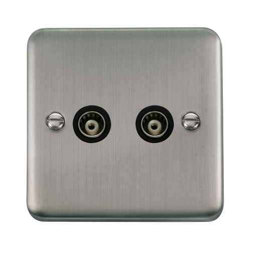 Click Deco Plus DPSS159BK Twin Co-Axial Outlet (Isolated) - Stainless Steel (Black)
