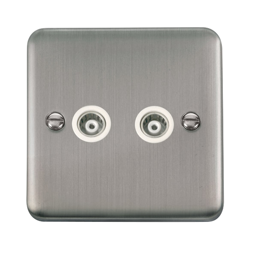 Click Deco Plus DPSS159WH Twin Co-Axial Outlet (Isolated) - Stainless Steel (White)