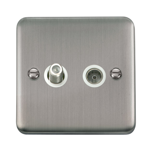 Click Deco Plus DPSS157WH Satellite & Co-Axial Outlet (Isolated) - Stainless Steel (White)
