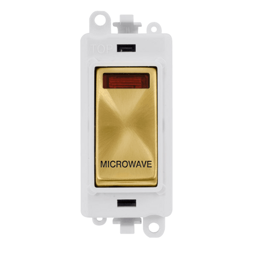 Click GridPro GM2018NPWSB-MW 20AX Double Pole Switch with Neon Module printed "Microwave" - Satin Brass (Polar White) CLICK GridPro Interchangeable...